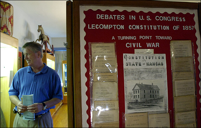 The Bleeding Kansas Heritage Area bill passed the Senate on Tuesday, putting Lawrence and northeast Kansas a step closer to becoming a Civil War tourist destination. Wednesday at the Territorial Capital Museum in Lecompton, Dennis Wollnik, of Kansas City, Mo., toured the exhibits.