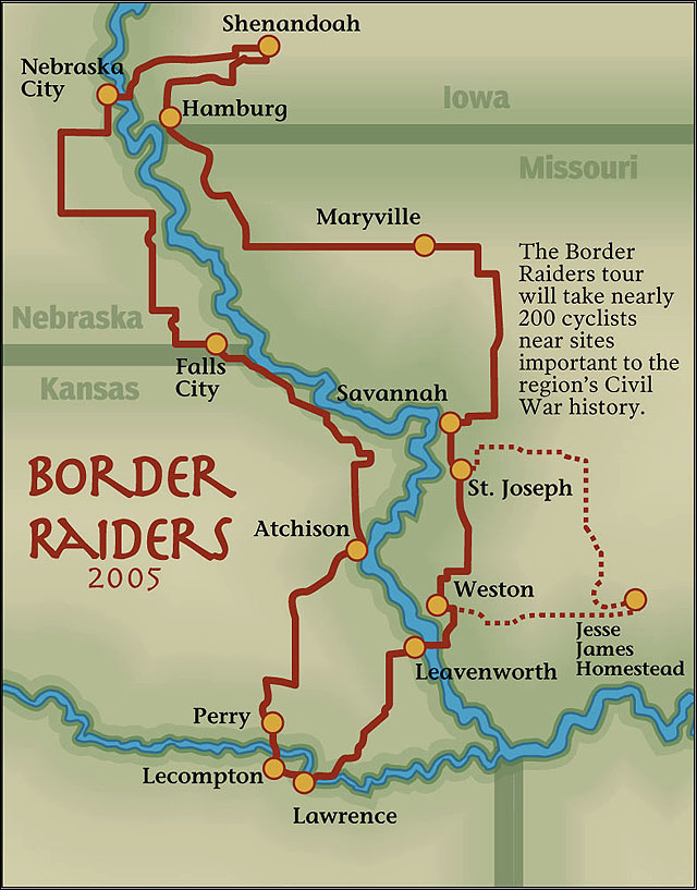 But that history is precisely why Lecompton is one of the first stops on the “Border Raiders” bike tour that starts today in Lawrence and continues along a 400-mile loop of Civil War-era history through Kansas, Missouri, Iowa and Nebraska.