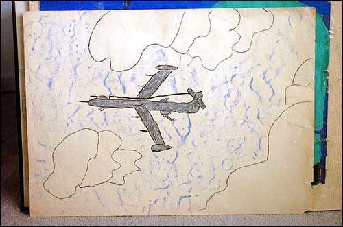 A picture of an airplane drawn by Alan Mulally, then a fifth-grader at East Heights School.