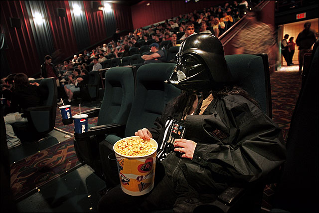 Lisa Tuzes, of Saginaw, Mich., waits with her popcorn for the start of Star Wars: Episode III - Revenge of the Sith, Thursday in Birch Run, Mich. The film sold 0 million worth of tickets on Thursday.