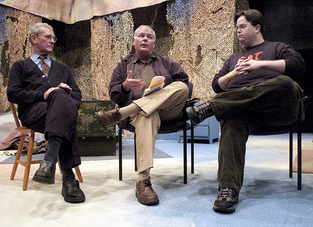 From left, Allan Hanson, Kansas University professor of anthropology; Kevin Lucey, father of U.S. Marine Reservist Jeffrey Lucey, who suffered from post-traumatic stress disorder; and Zacory Boatright, playwright of An