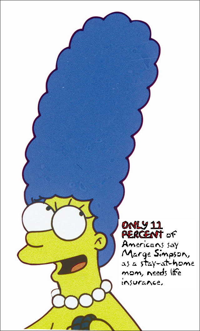 ¢ Only 11 percent said Marge Simpson, a stay-at-home mom, should get life insurance. I understand those polled might think it makes sense to just insure the person bringing home the money, but not all family contributions are monetary. As Woods points out: “Stay-at-home parents like Marge perform many household services that would be expensive to replace, and consequently have a significant need for life insurance.”