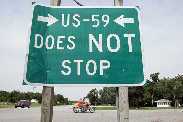 KDOT also will install stop signs at three spots on the highway to warn U.S. 59 drivers. Stop signs will be placed on both sides of the road. Flags and flashing lights are included in the plans.