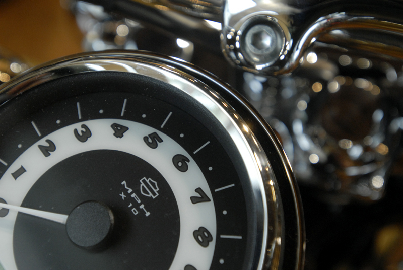 A Harley-Davidson odometer is reflective of the surge of new developments and business in North Lawrence.