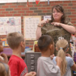 Kennedy School second-grade teacher Kay Becker leads her class in doing the Kennedy Pledge by sign language on the first day of school last week. Teachers are working under last year's contract until a new one between the school district and Lawrence Education Association is finalized.