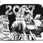 … when Democrats, having won the November elections, take control of both houses of Congress with surprisingly little loss of life. In the House of Representatives, incoming speaker Nancy Pelosi pledges “a new era of bipartisan cooperation,” then brings the gavel down on the head of outgoing speaker Dennis Hastert.