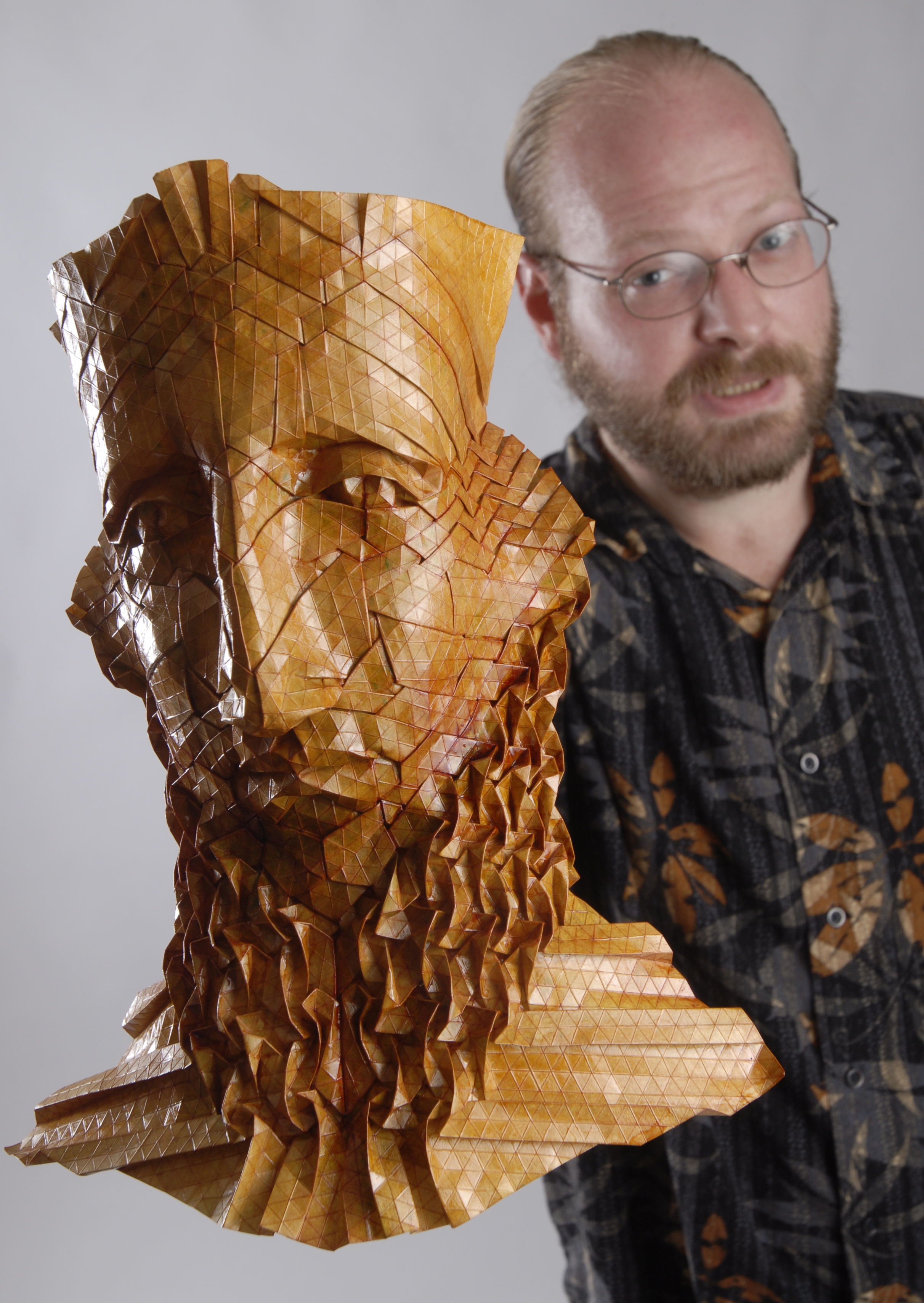 Cooper, the origami artist, certainly works with patterns, but they’re patterns of his own invention. A native of San Francisco, he graduated in 1992 from Kansas University with a bachelor’s degree in sculpture.