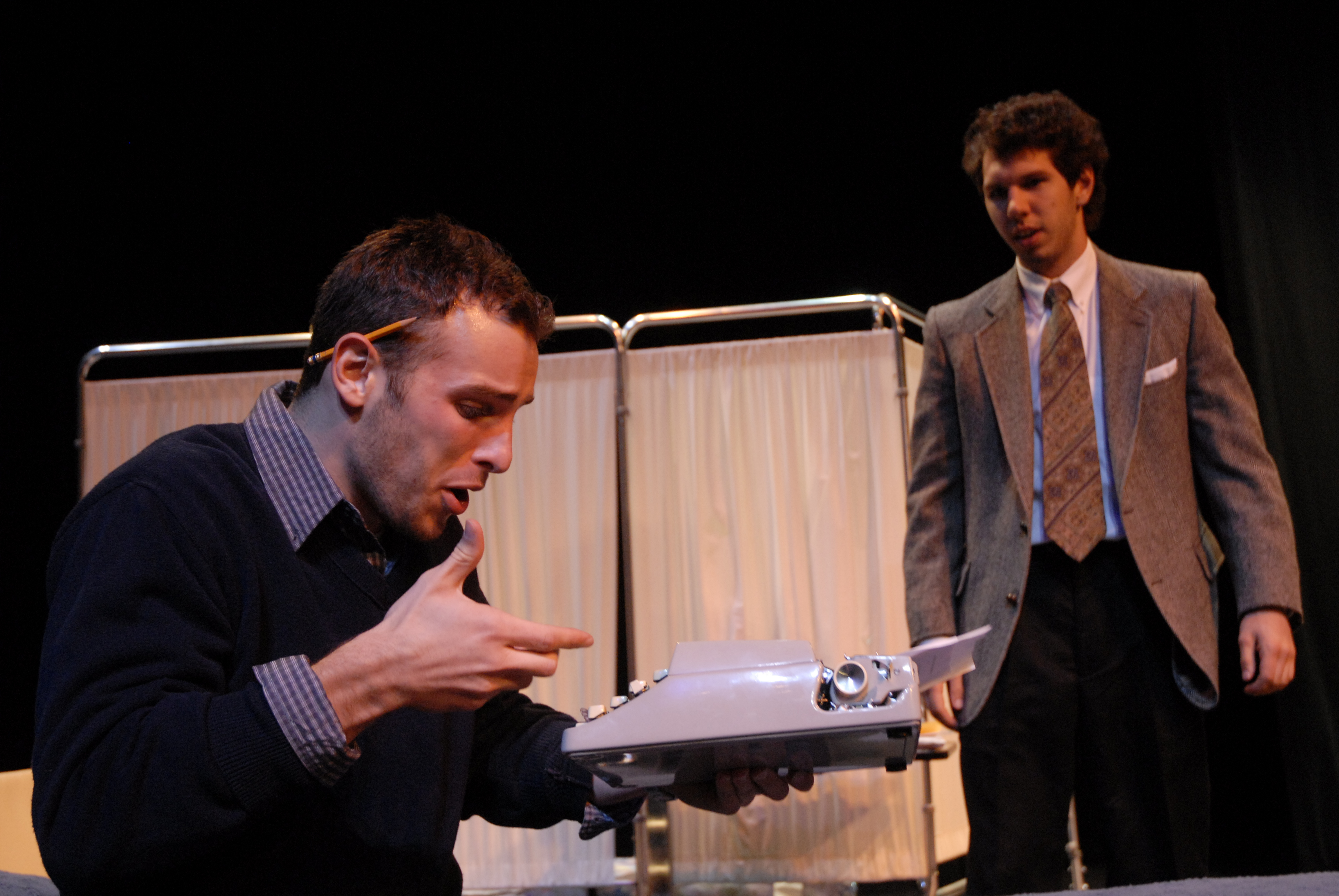 John Volk, left, and Jakob Wozniak rehearse a scene from Lights
