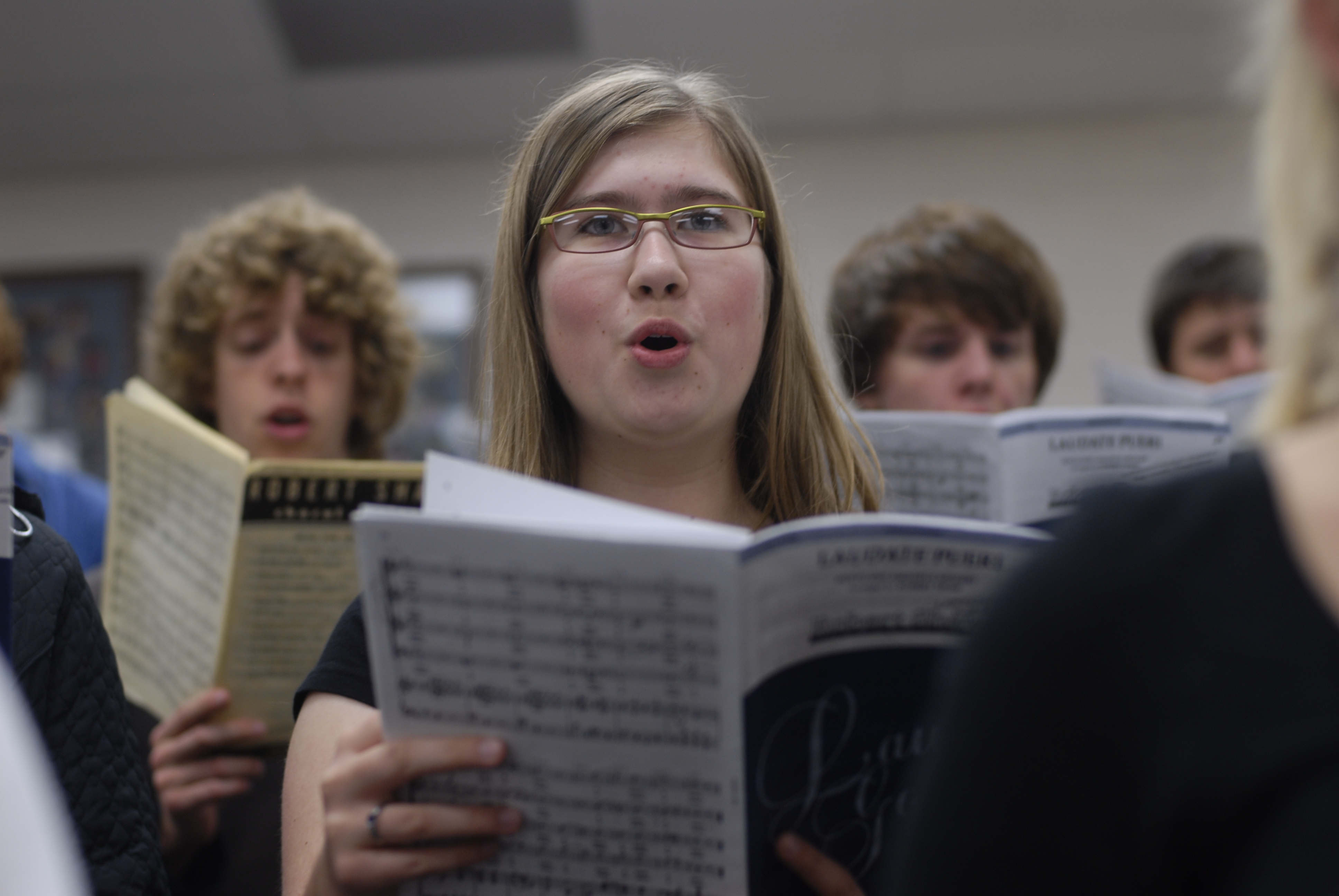 Lawrence High School senior Stephanie Drahozal rehearses with the A Cappella Choir on Wednesday at the school. Drahozal, who is involved in choir, orchestra and theater at LHS, has been named the September ArtStar, a new World Company program that recognizes outstanding seniors in the fine arts.