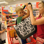 Ben Morgenstern, 10, left, and his brother, Henry, 5, try on new messenger bags during a shopping trip for school supplies at SuperTarget, 3201 S. Iowa, with their mother, Janet Morgenstern, Baldwin City. Henry will be in kindergarten, and Ben will be in fifth grade this year.