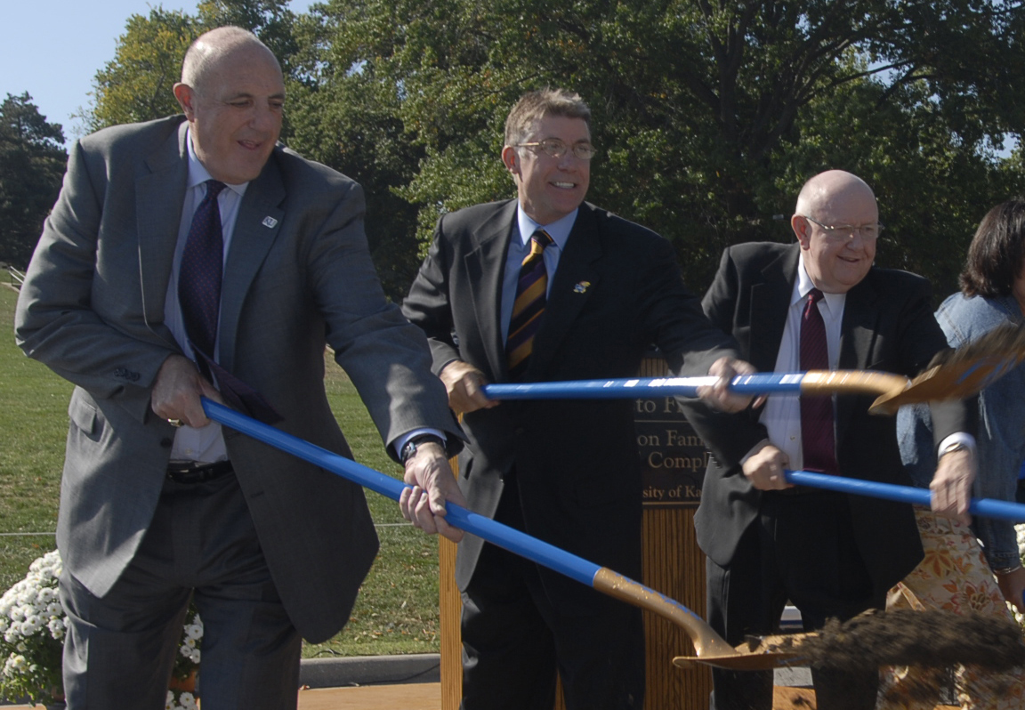Tom Kivisto, center, breaks ground for the Anderson Family Football Complex at Kivisto Field in this October 2006 photo. With him are Kansas University Athletic Director Lew Perkins, left, and Chancellor Robert Hemenway. Kivisto was the head of SemGroup LP in Tulsa, Okla., an oil marketer that filed for Chapter 11 bankruptcy protection July 22. The filing has put 40 million in payments for crude oil purchased in the last two months from Kansas oil fields in limbo.