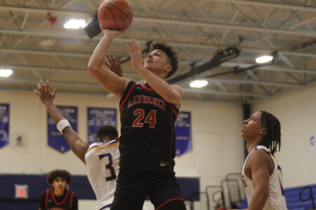 Hardly a Lawrence player or booster breathed as the G-Lions crossed midcourt and Soyez headed down the lane. But the sophomore guard stumbled, went to the floor, the clock expired and Lawrence’s players went berserk.