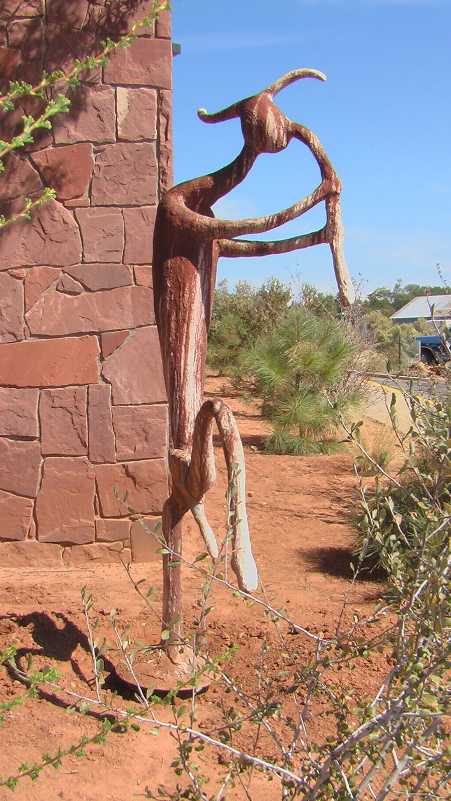 The statue depicts an image commonly found on rock panels in southern Utah, a man believed to be announcing the arrival of spring with a flute.