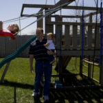 Campbell Elwell, 3, enjoys playing on her backyard swingset with her father, 6News meteorologist Matt Elwell, sister Paige, 1, and mother Cassandra Elwell on Wednesday outside their Lawrence home. After the couple lost their first daughter Grace to premature birth, Campbell was born 14 weeks premature, in photo at top, and spent 129 days in the hospital before coming home. The Elwells are taking part in the annual March for Babies fundraiser on Saturday.