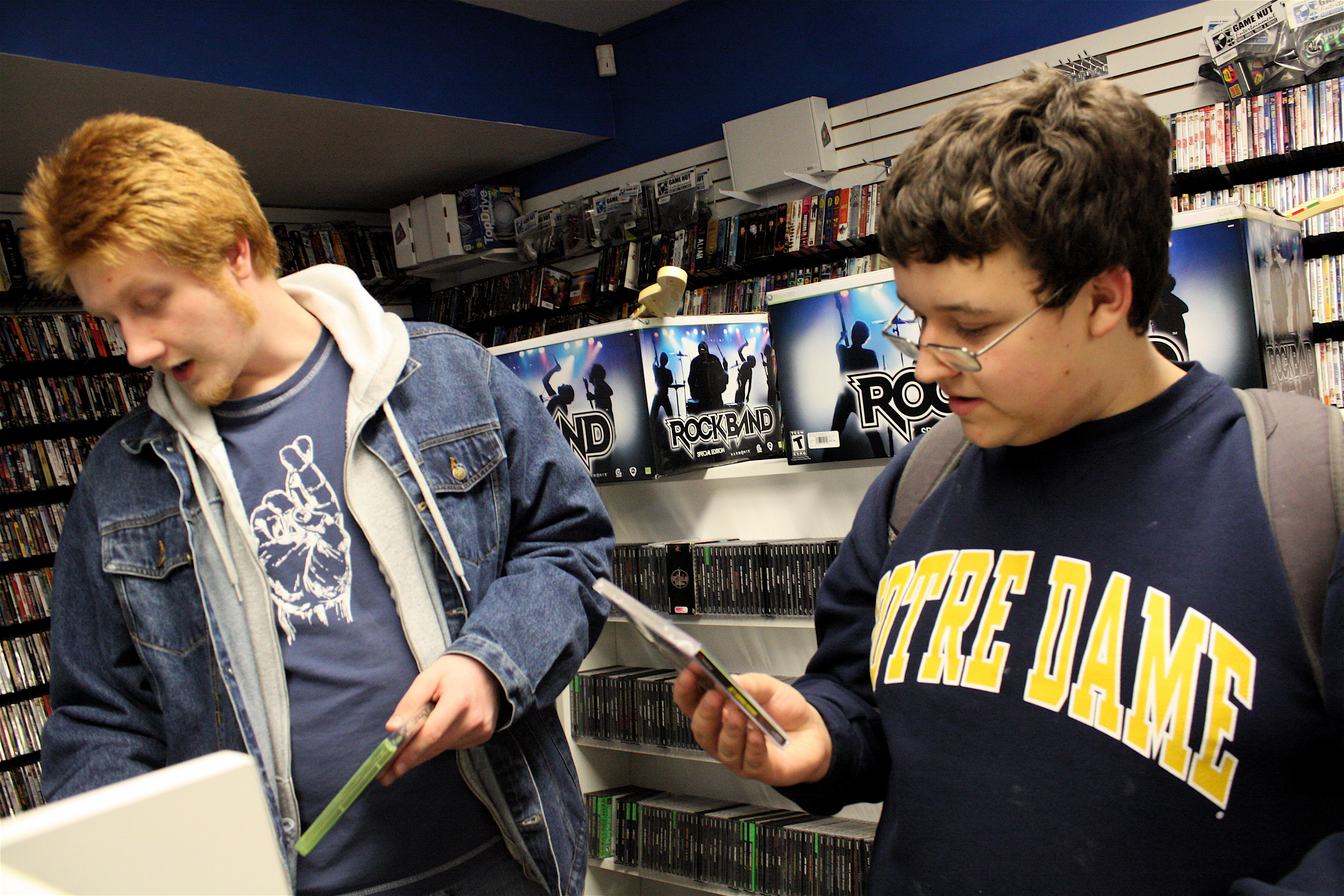 Brandon Siler, left, and Brenan Conroy browse through video games at Game Nut, 844 Mass.