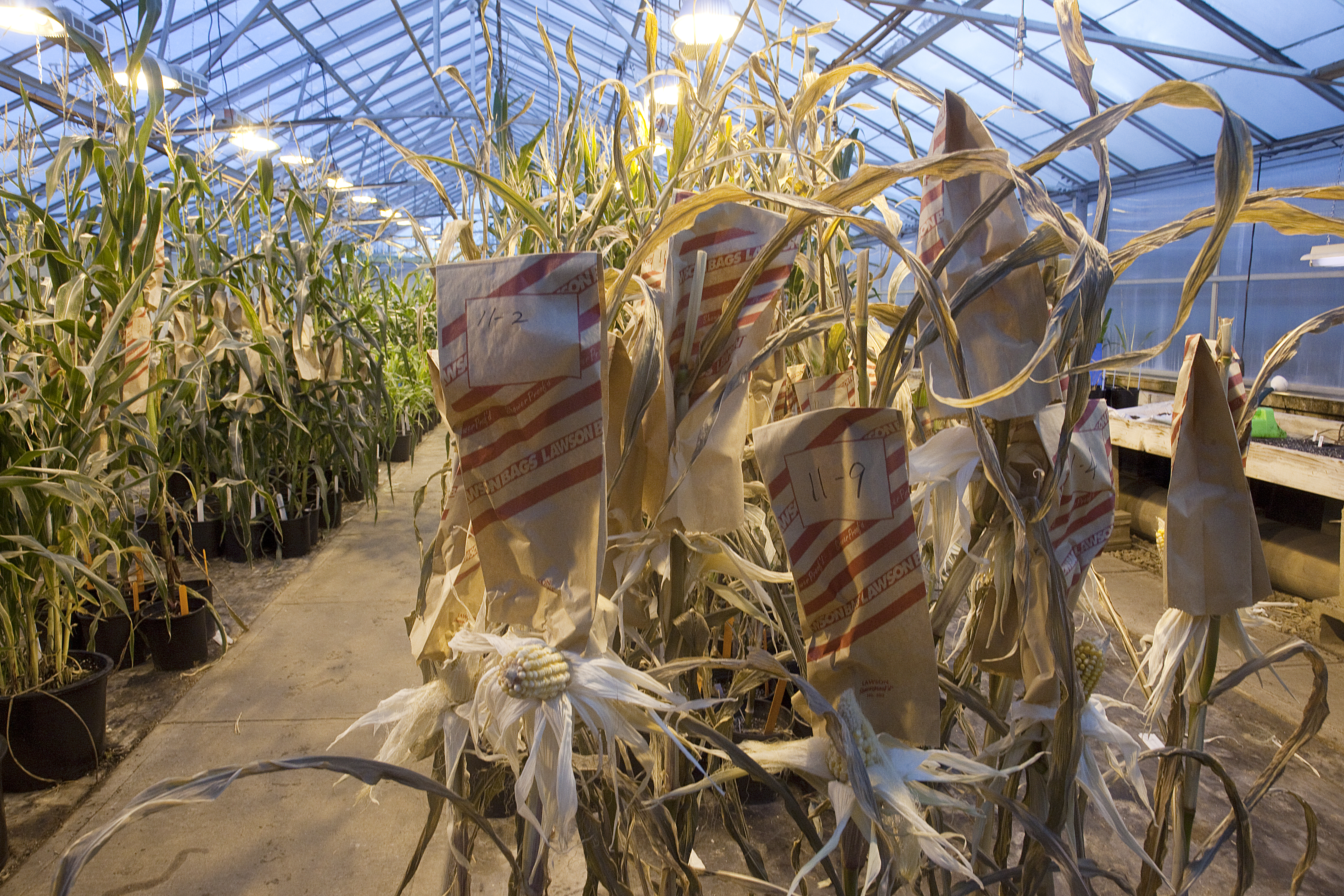Manhattan ? On an overcast winter afternoon, the doors of a greenhouse on the outskirts of Manhattan are the portal to a hot mid-July day. Inside, potted rows of corn stand in 90-degree heat under 12 hours of gleaming light and emit that familiar sugary sweet smell of summer.