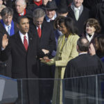 Barack Obama, left, joined by his wife Michelle, second from left, and daughters Sasha, third from left, and Malia, takes the oath of office from Chief Justice John Roberts to become the 44th president of the United States at the U.S. Capitol in Washington, Tuesday, Jan. 20, 2009.