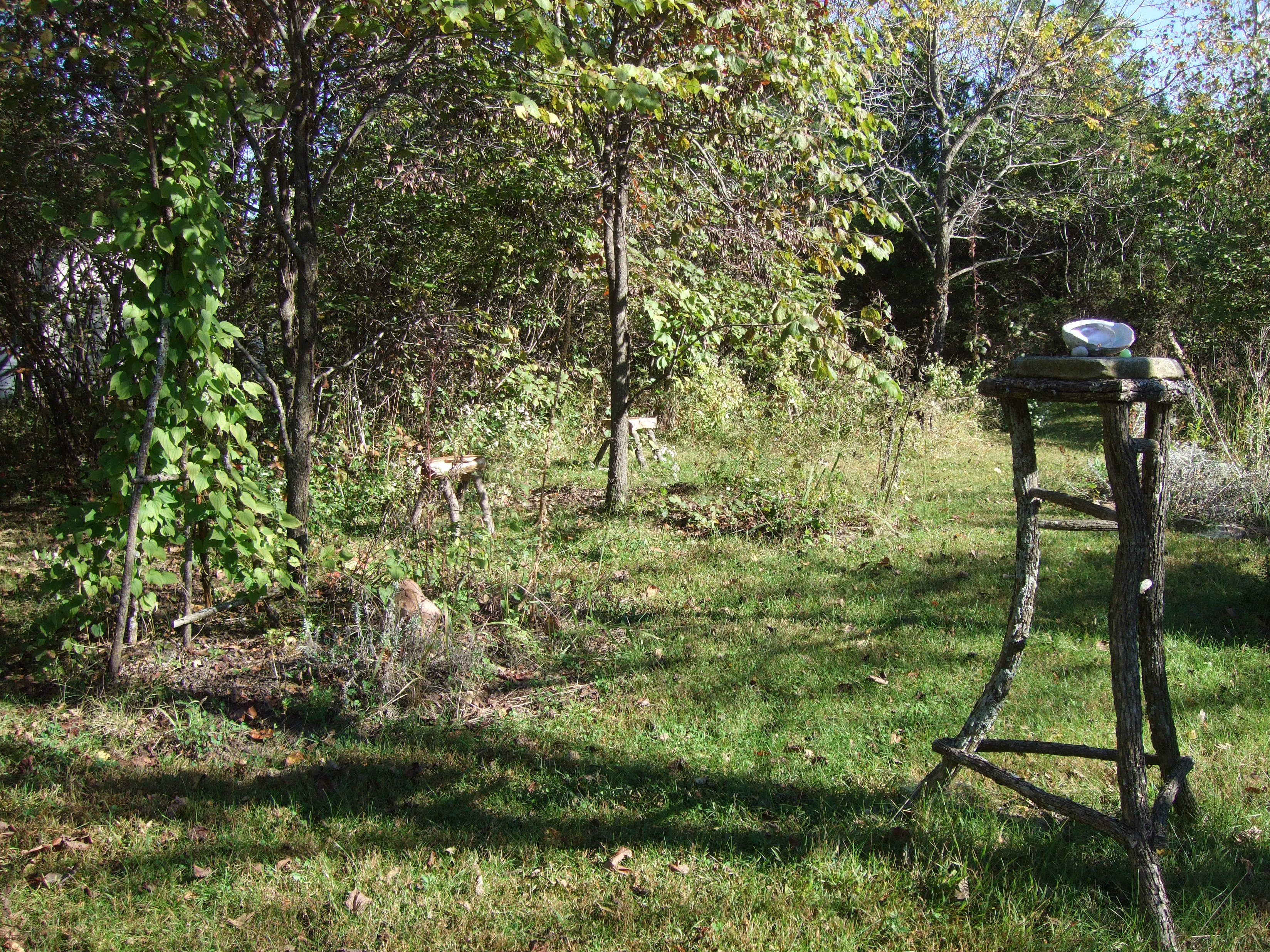 At Vajra Farm, Moring is incorporating permaculture practices to his established farm. He has ripped out plants and added several gardens, including a medicinal garden and a food forest. The medicinal garden has medicinal herbs and plants with areas for meditation integrated into it. His food forest consists of fruit and nut trees, as well as natural burms created by trees that were cut down and left to become compost.