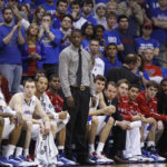 Mario Little, who is suspended, stands to watch the action from the bench during the first half, Wednesday, Dec. 29, 2010 at Allen Fieldhouse.