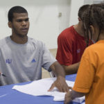 Royce Woolridge signs autographs at the Bill Self basketball camp in this file photo. Woolridge recently made a recruiting trip to Washington State.
