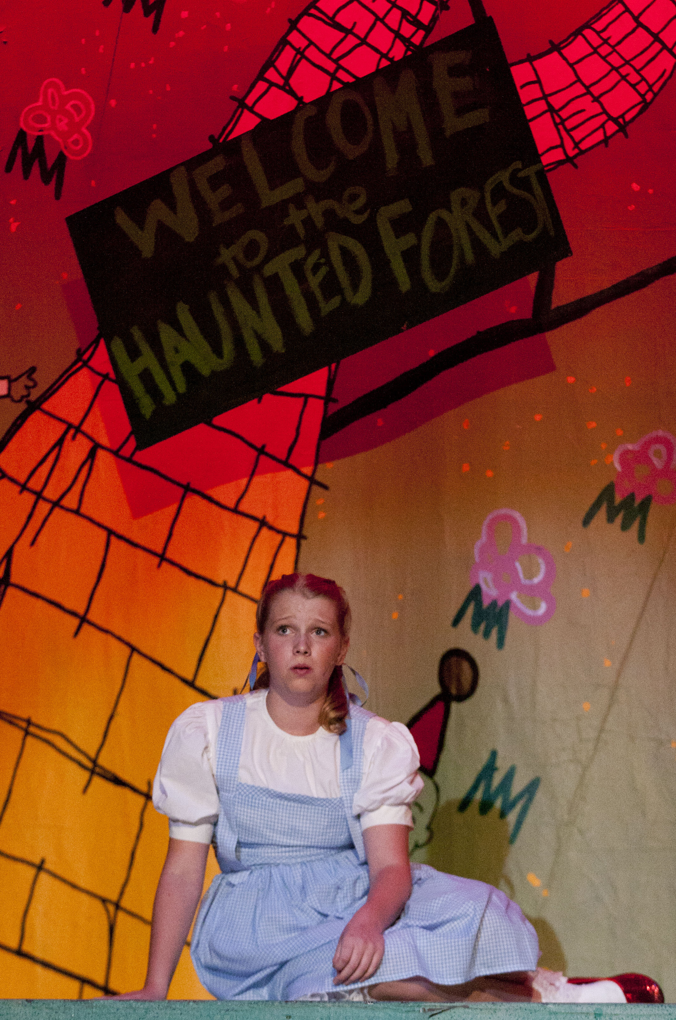 Dorothy, played by Carter Stacey, sings as she is held captive in the Wicked Witch of the West's castle during a dress rehearsal of The