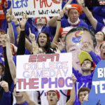 KU fans participate in the ESPN College Game Day show in this photo from February 16, 2013, in Allen Fieldhouse.