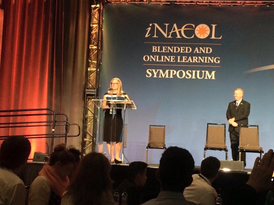 Lawrence Quail Run Elementary teacher Paula Barr receives the Blended and Online Teacher of the Year award Tuesday at the International Association for K-12 Online Learning symposium in Orlando.