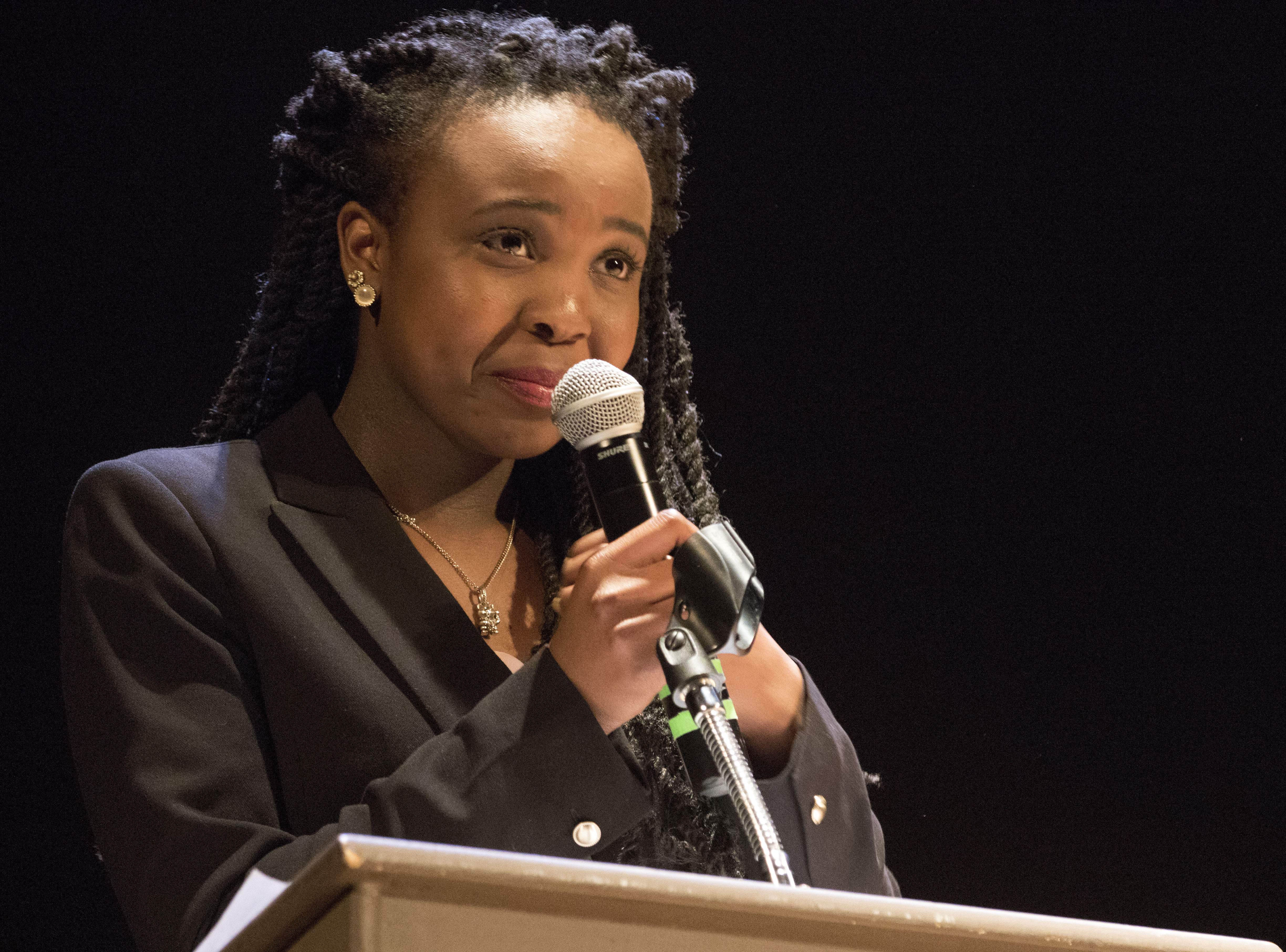 Jazmyne McNair fights back tears as she gives thanks to her family during her acceptance speech after being named the Lawrence Boys and Girls Club 2016 Youth of the Year on Thursday evening at Liberty Hall, 644 Massachusetts St.