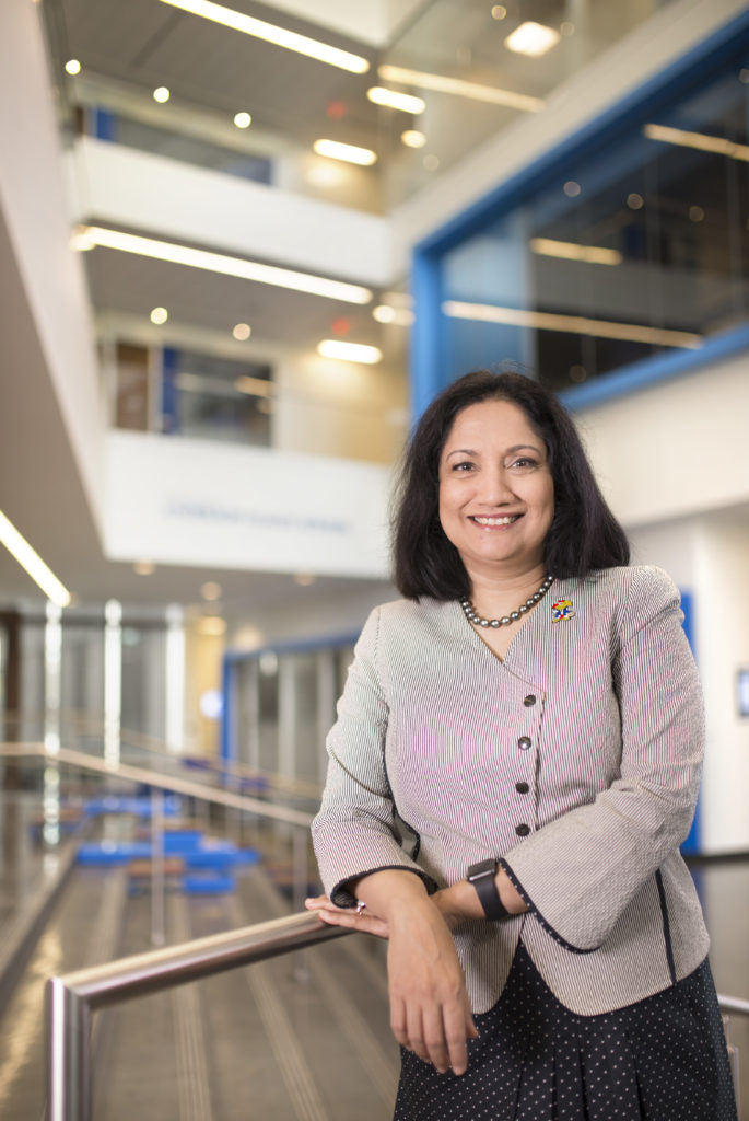 Kansas University School of Business dean Neeli Bendapudi will take over as provost of the university on July 1, 2016. She is pictured inside the main atrium of the new Capitol Federal Hall, a project she helped push through while serving as dean of the School of Business.