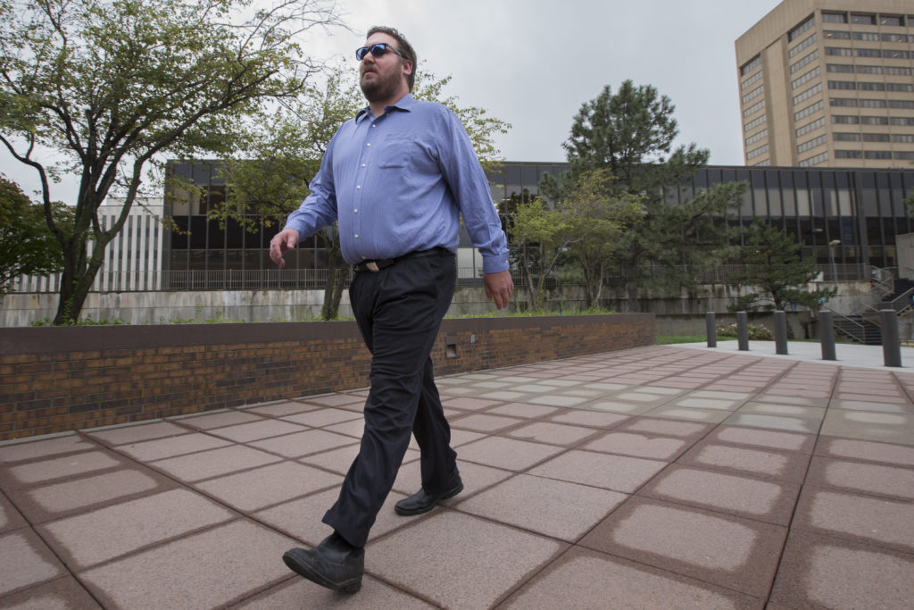 Former Lawrence Mayor Jeremy Farmer enters the Frank Carlson Federal Building on Thursday, Sept. 8, 2016, in Topeka. Farmer was appearing on a charge of embezzling funds during his time as the executive director of Just Food.