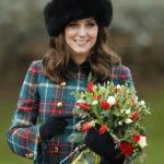 Britain's Kate, Duchess of Cambridge, smiles as she holds a bunch of flowers received from well wishers following the traditional Christmas Day church service, at St. Mary Magdalene Church in Sandringham, England, Monday, Dec. 25, 2017. (AP Photo/Alastair Grant)