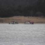 Representatives from the Douglas County Sheriff's Office and the Kansas Department of Wildlife and Parks searched Monday, Feb. 20, 2017, for one of two teenagers who were thrown into the Douglas State Fishing Lake on Saturday after a boat capsized.