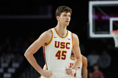 The 6-8 Jackson caught the ball on the right baseline with his back to the basket, and the 6-7 Bridges behind him. What followed was a play reminiscent of Michael Jordan or Kobe Bryant, if not directly inspired by them. Jackson took two hard dribbles toward the paint before spinning back toward the baseline for a fade-away jumper off the glass — as pretty a bucket as you will see this weekend, with apologies to Lagerald Vick and his monster, two-handed finish of a Graham alley-oop pass.