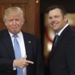 In this Nov. 20, 2016, file photo, then-President-elect Donald Trump greets Kansas Secretary of State Kris Kobach as he arrives at the Trump National Golf Club Bedminster clubhouse in Bedminster, N.J.