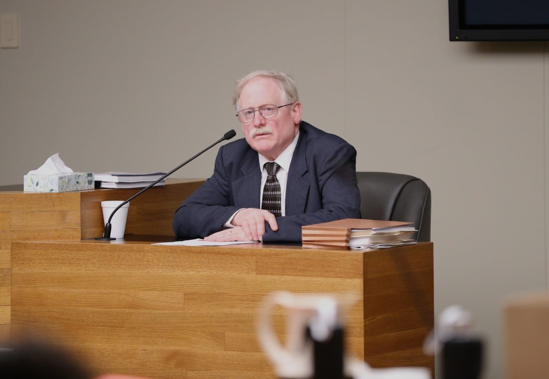 Former Douglas County Coroner Erik Mitchell testifies during a post-trial hearing for convicted murderer Carrody M. Buchhorn on Thursday, March 14, 2019, in Douglas County District Court.