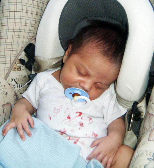 This little one has clearly been held by a zombie or two at the fifth annual Lawrence Zombie Walk.