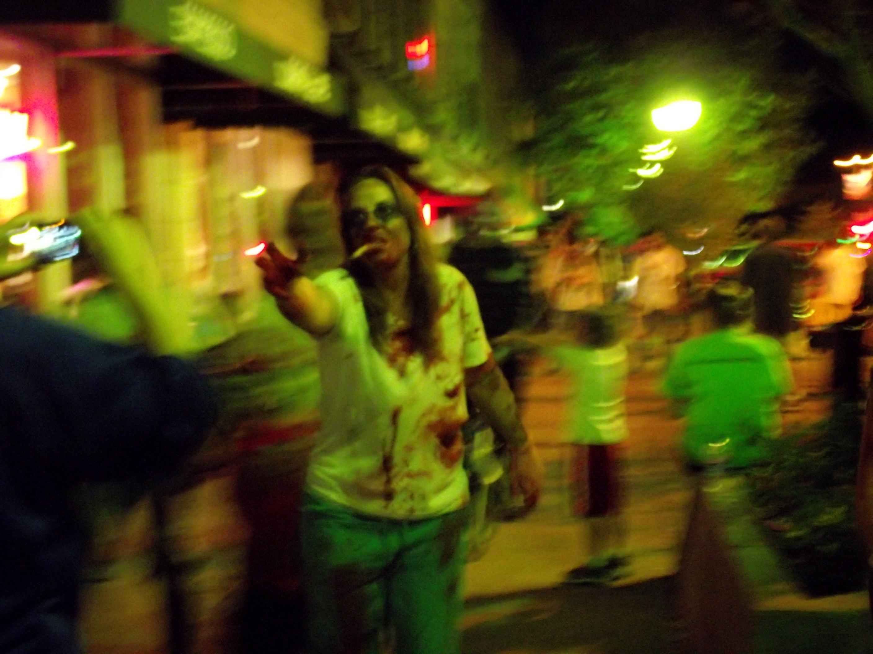 Zombies are a bit of a blur while they stalk down Massachusetts Street during the fifth annual Lawrence Zombie Walk.