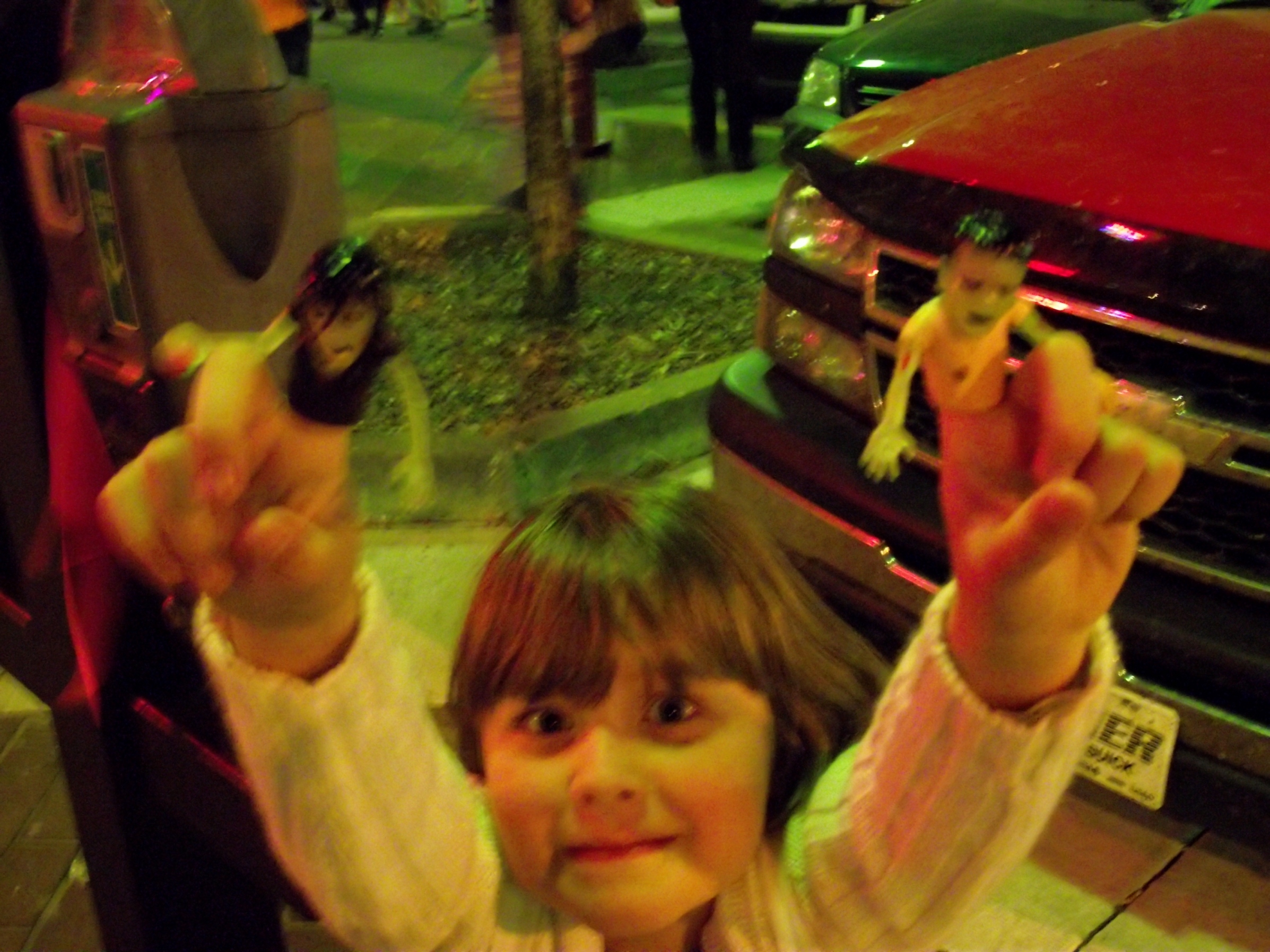 Miriam Agnew gives the fifth annual Lawrence Zombie Walk two thumbs up Thursday night.