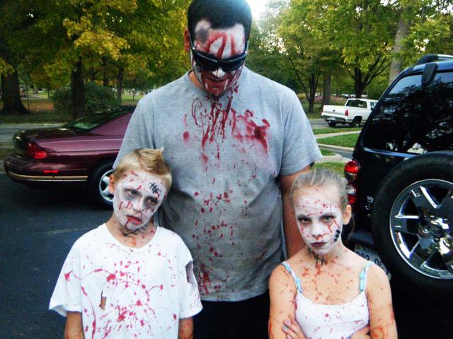 A zombie family readies in a parking lot before the fifth annual Lawrence Zombie Walk.