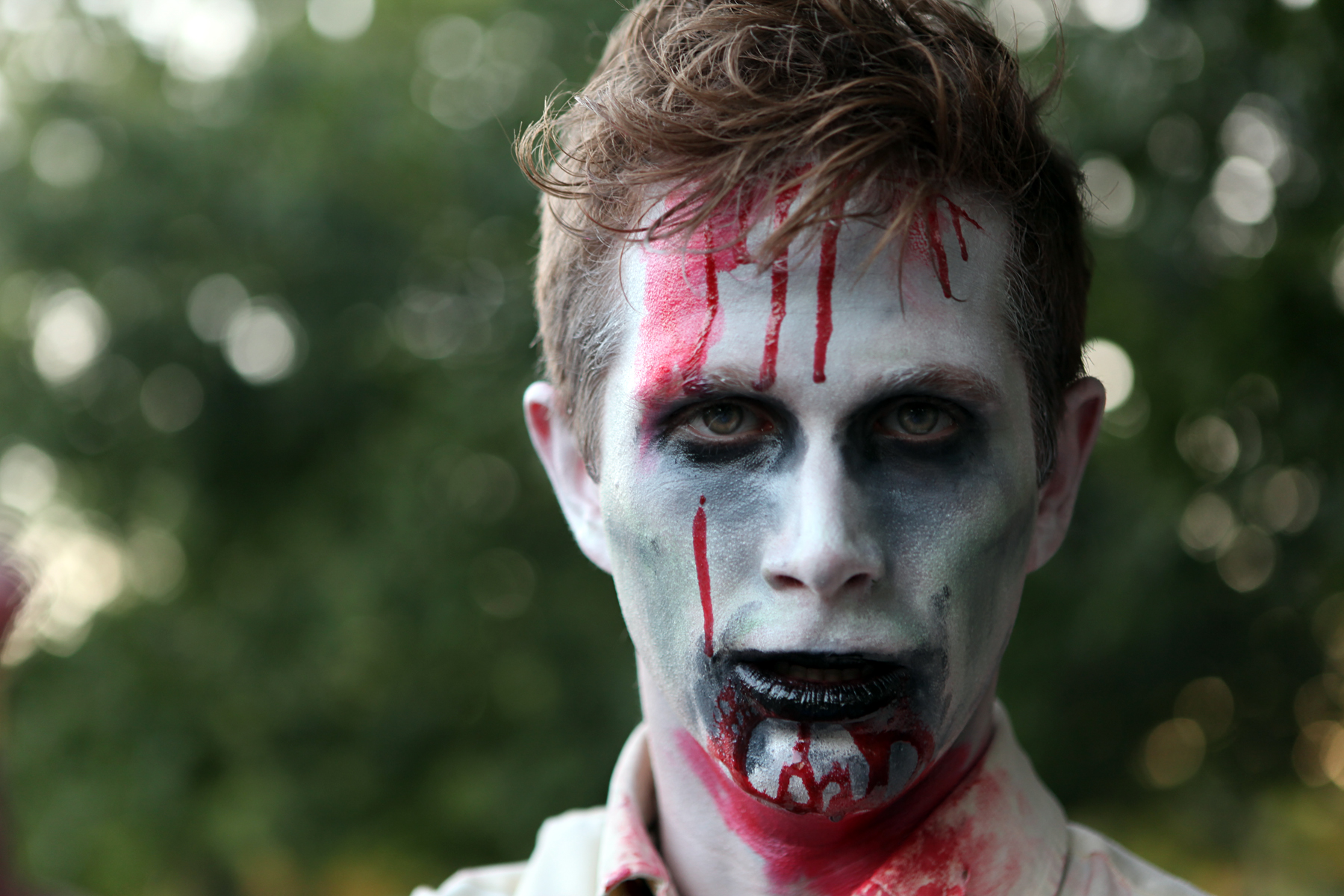 A zombie portrait shows of intricate makeup during the fifth annual Lawrence Zombie Walk.