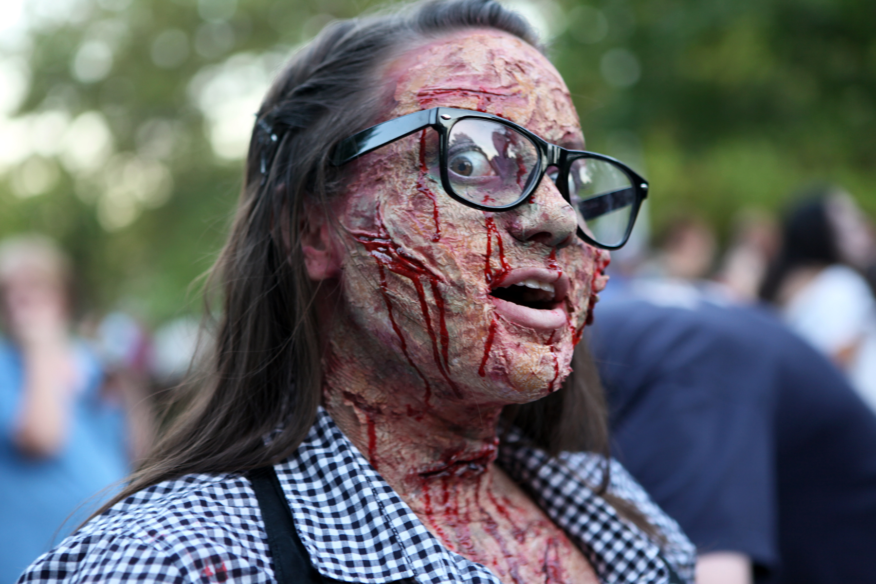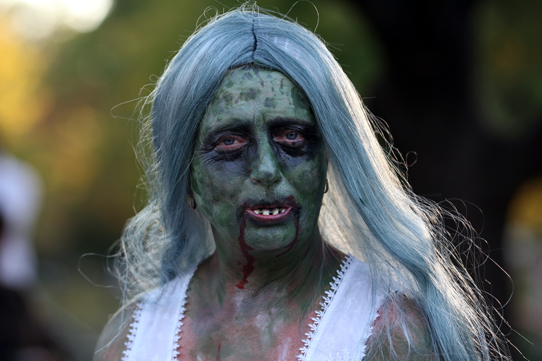 A a true blue zombie shows off her look at the fifth-annual Lawrence Zombie Walk.