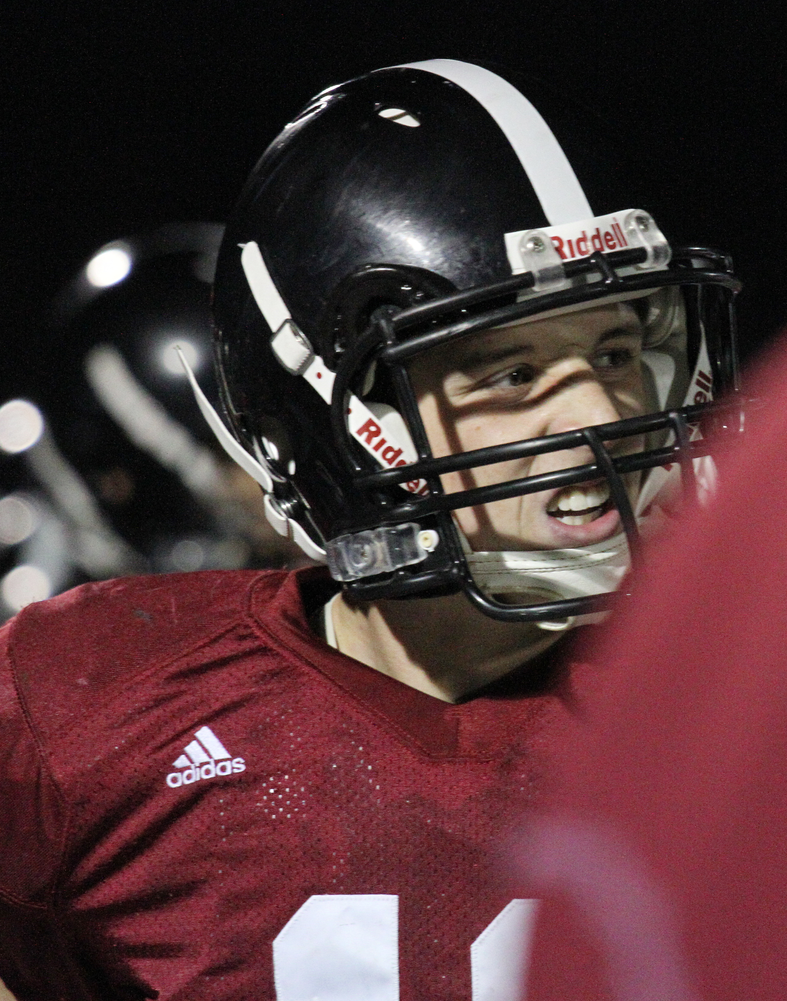 Lions quarterback Brad Strauss watches the Lions defense attempt to stop Shawnee Mission West late in the 4th quarter in a 21-14 loss to West in a 6A regional playoff game at LHS Friday night.