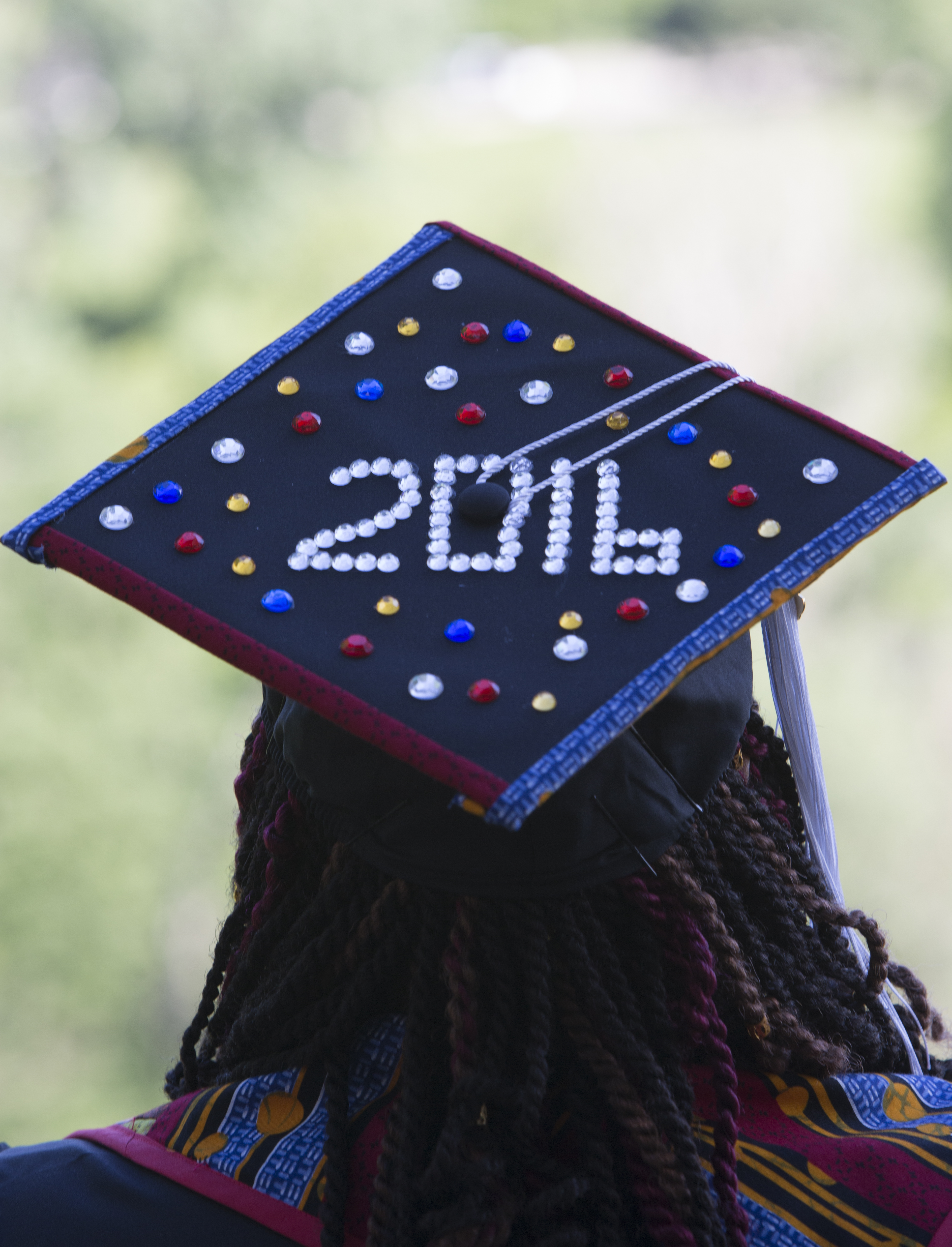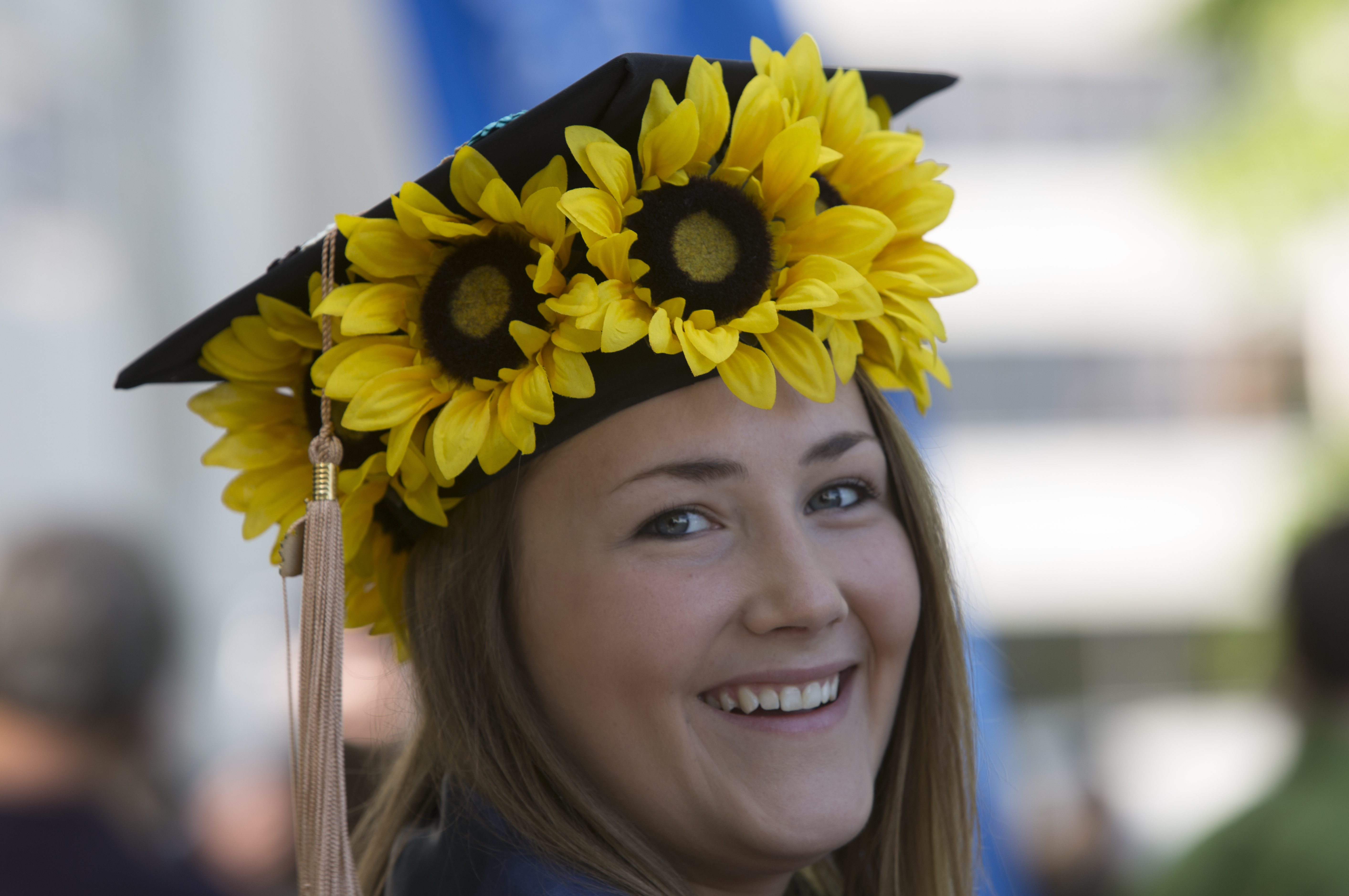 KU graduate Danica Hoose, of Parsons, sported a Sunflower cap during graduation on Sunday, May 15, 2016 in Memorial Stadium.