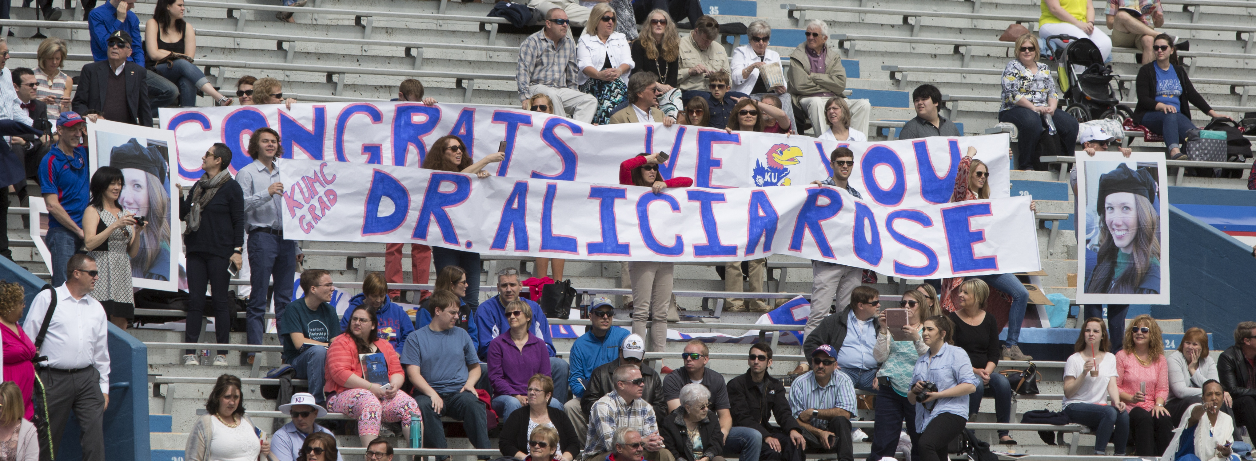 Family and friends of Dr. Alicia Rose let her know they were in attendance for her graduation on Sunday, May 15, 2016, in Memorial Stadium.