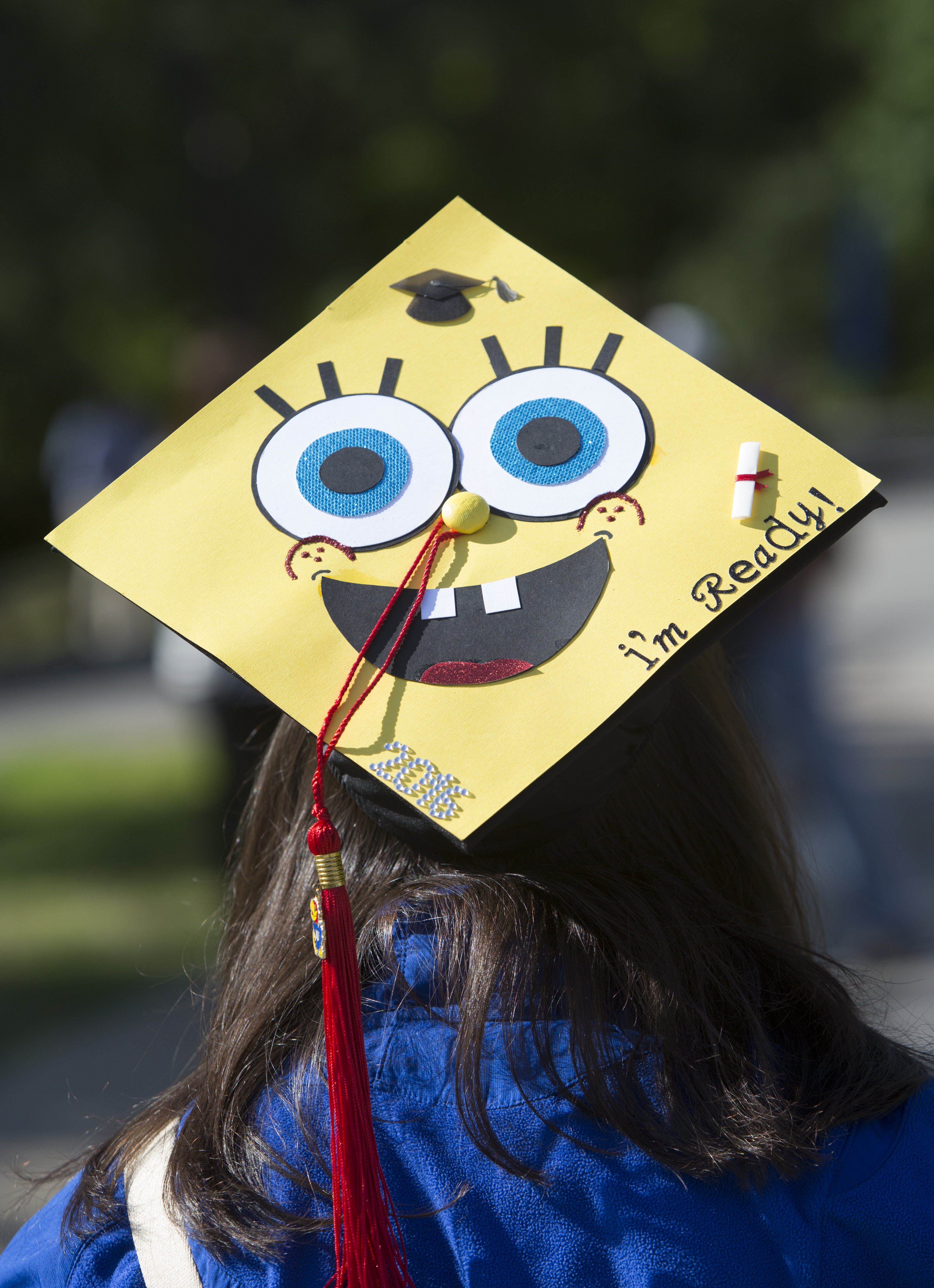 A KU graduate channeled Spongebob Squarepants, making the proclamation "I'm ready!" at graduation on Sunday, May 15, 2016.