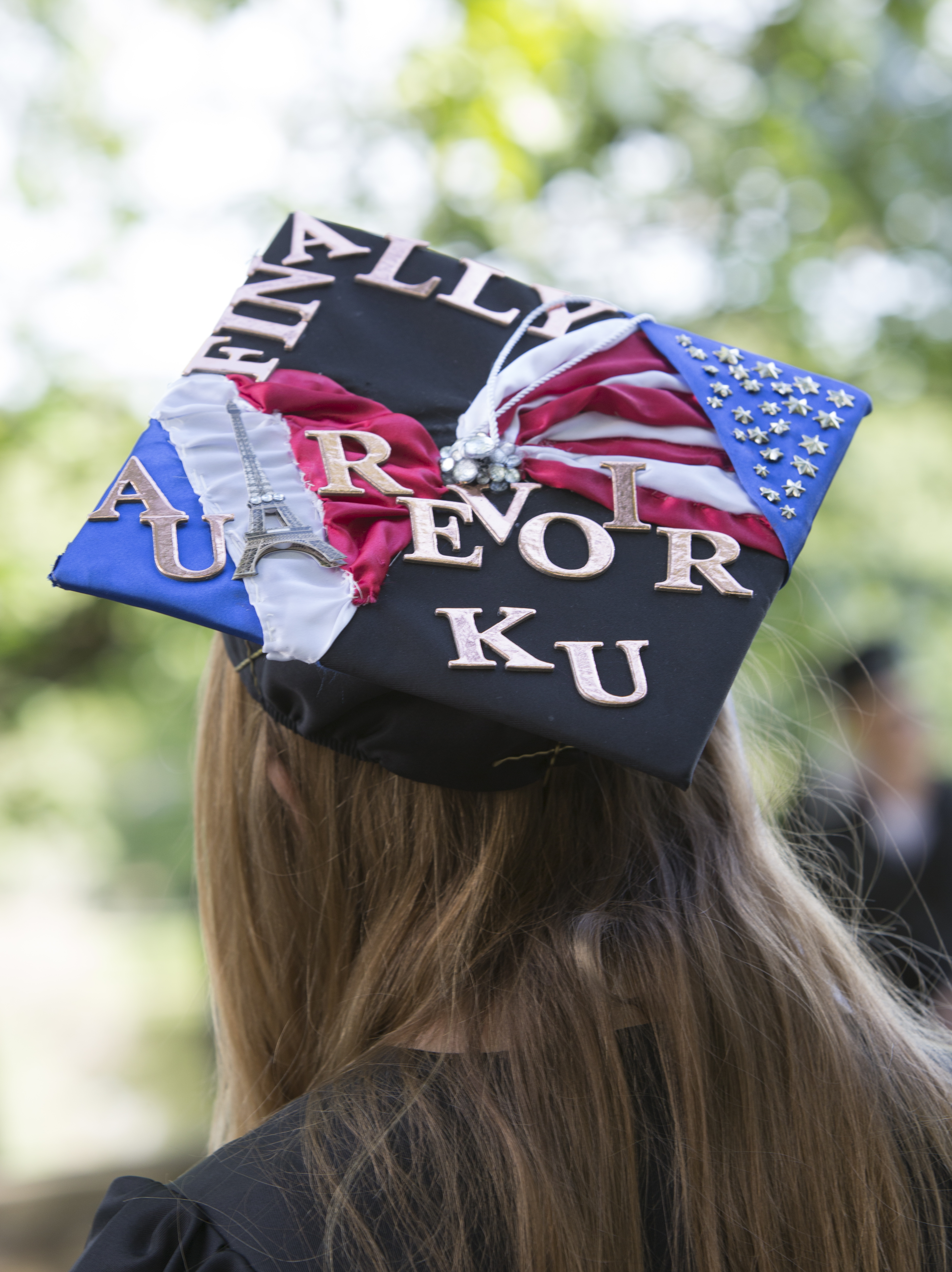 This KU graduate bids "Au revoir" to the university at the ceremony on Sunday, May 15, 2016.