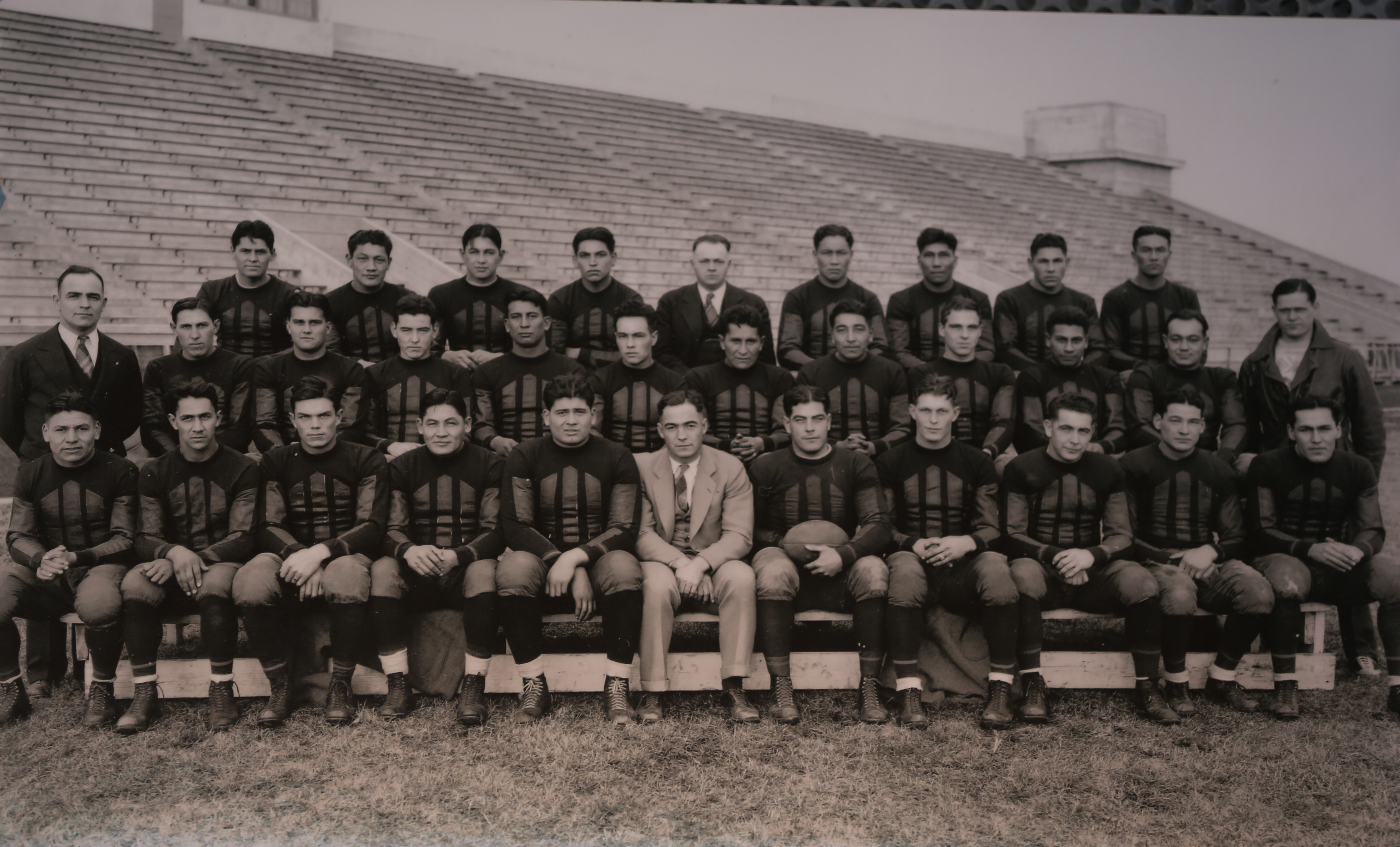 The 1926 Haskell Institute football team with head coach Frank McDonald, front and center.