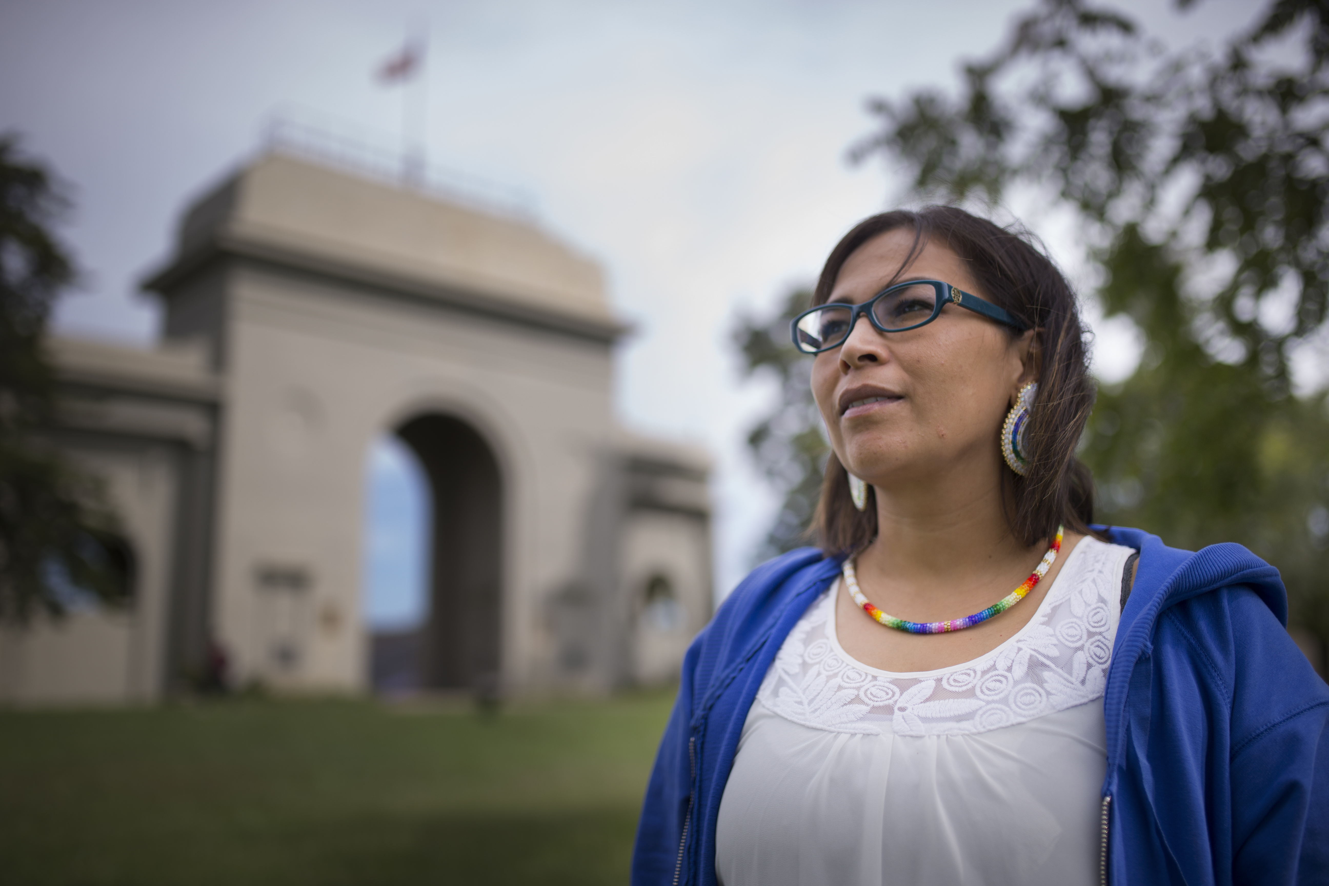 Haskell Cultural Center and Museum director Jancita Warrington, Menominee, Prairie Band Potawatomi and Ho-Chunk Nation, is pictured on Monday, Sept. 12, 2016 outside Haskell Memorial Stadium.