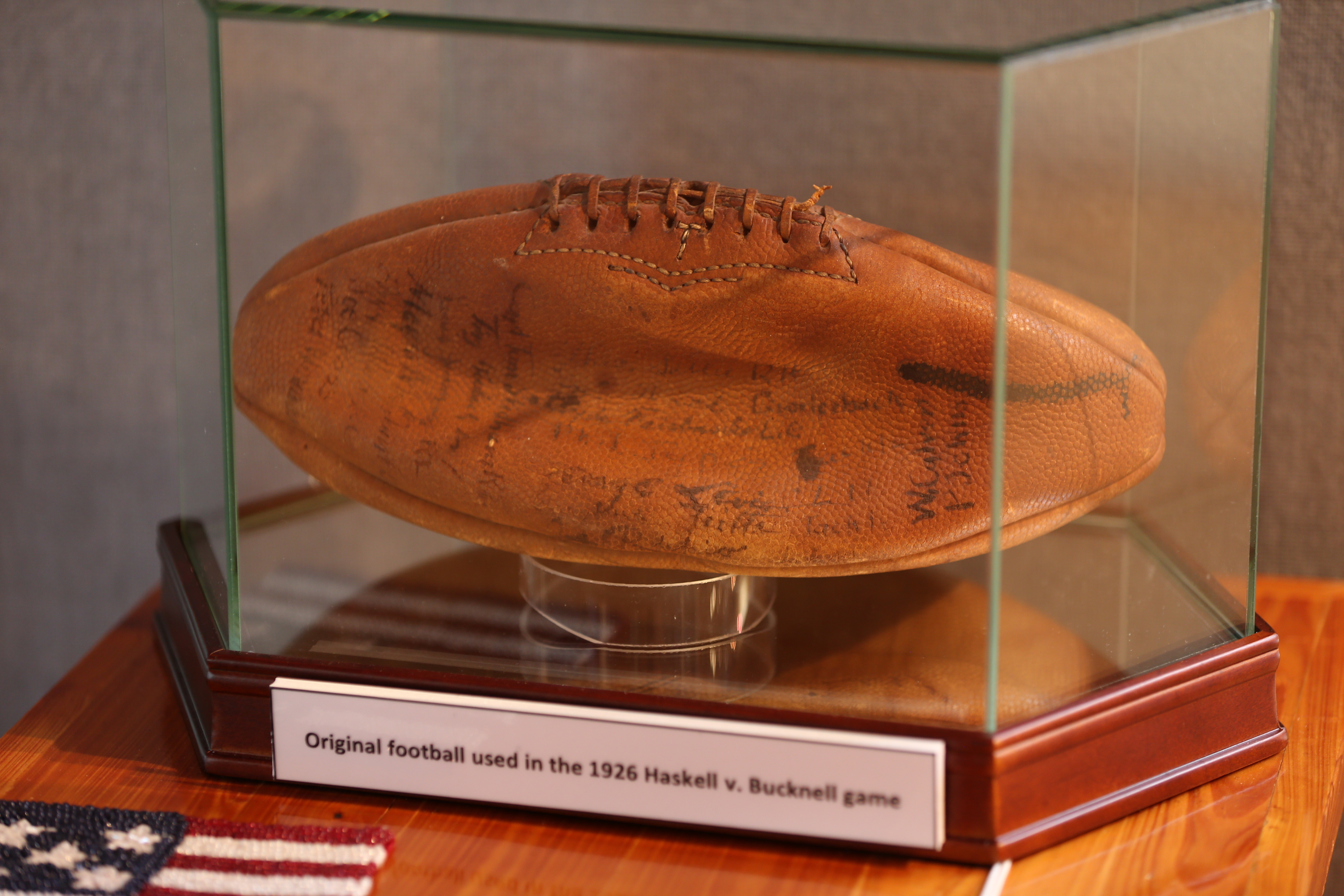 The game ball from the first Haskell football game at Haskell Memorial Stadium on Oct. 30, 2016.