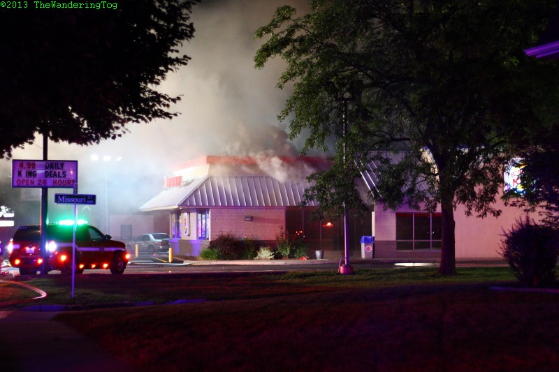 The Lawrence Burger King at 6th and Missoui streets caught fire early this morning. Photo credit: John Hamm